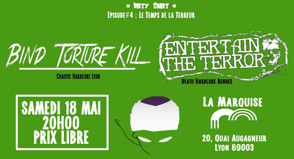 Formé à Rennes en 2016 avec déjà plusieurs titres de sorties dont un Split, les 5 membres d’Entertain The Terror nous servent un mélange Death, Metal et Beatdown Hardcore aux sonorités très lourde et noire. Aguerri par plusieurs concerts à travers la France ainsi que par des musiciens qui n’en sont pas à leur première expérience de groupe.