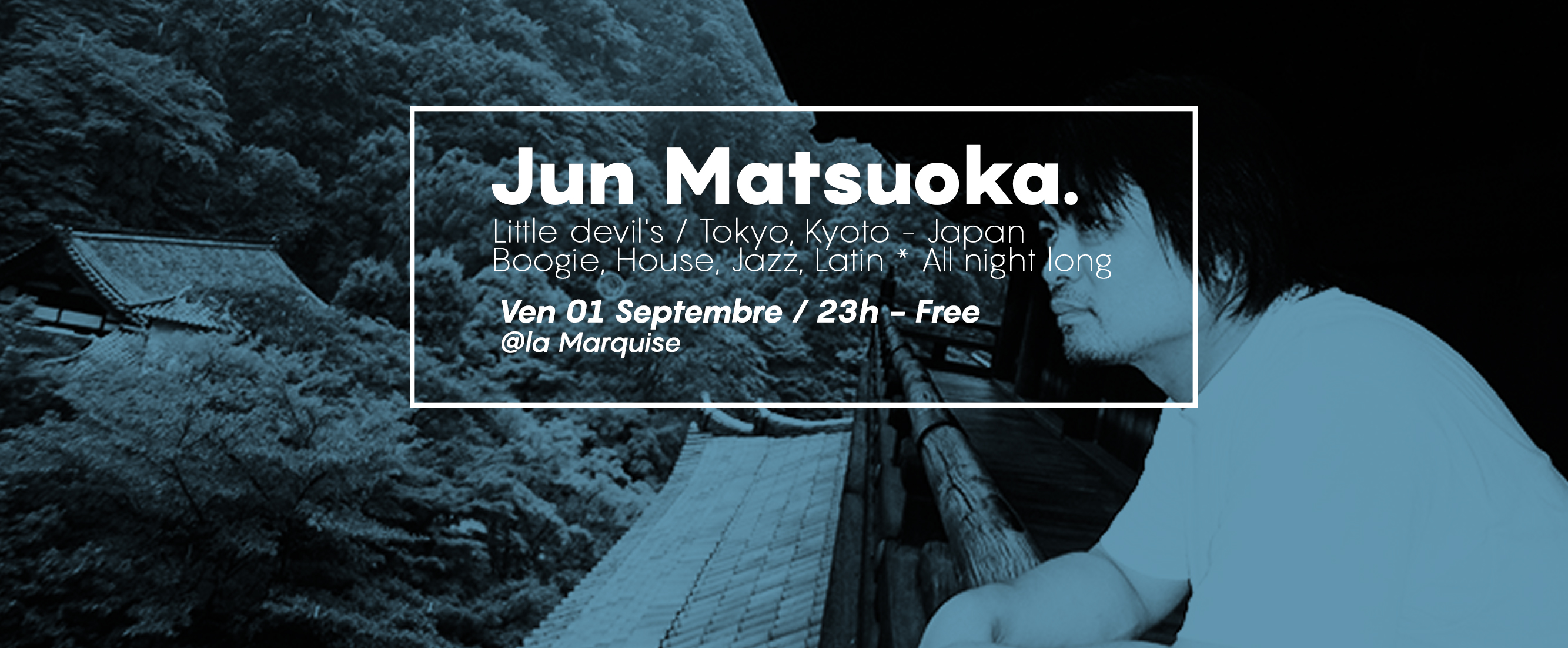 Né à Kyoto, Jun Matsuoka a fait ses armes en tant que DJ à Tokyo dès 1989. Arrivé à Lyon en 1998, il y rejoint l’équipe de Plein Gaz Productions. Propriétaire et directeur artistique de La Marquise depuis 2003, ses DJ sets éclectiques oscillent entre hip-hop UK, voix jazzy et rythmes brésiliens.