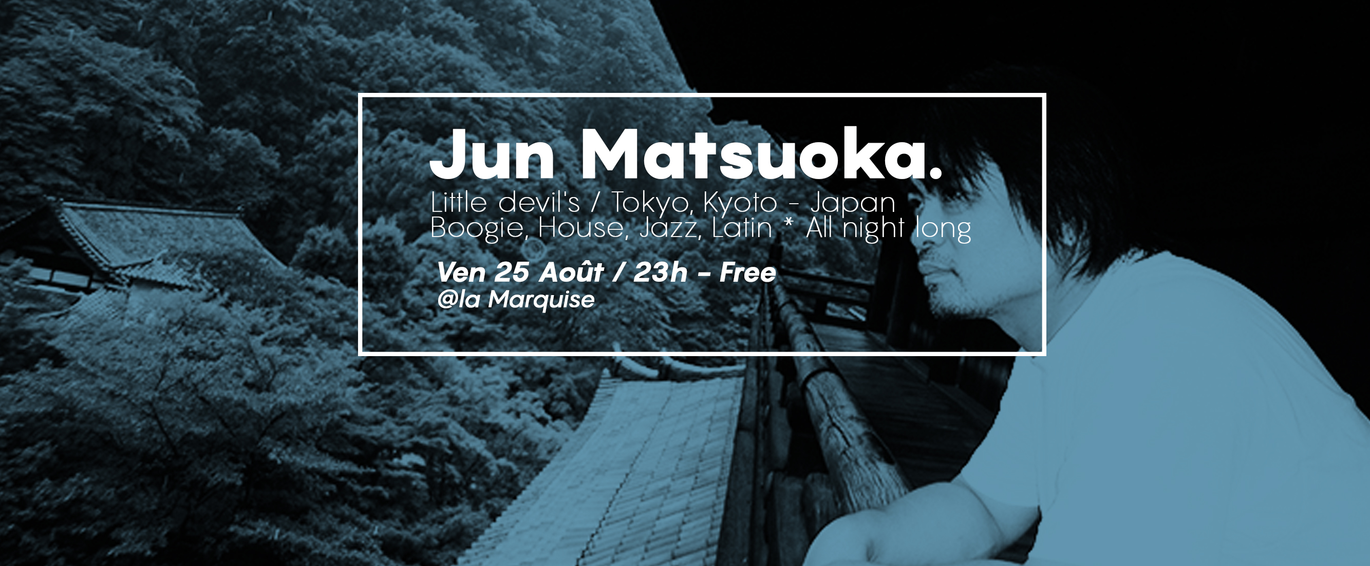 Né à Kyoto, Jun Matsuoka a fait ses armes en tant que DJ à Tokyo dès 1989. Arrivé à Lyon en 1998, il y rejoint l’équipe de Plein Gaz Productions. Propriétaire et directeur artistique de La Marquise depuis 2003, ses DJ sets éclectiques oscillent entre hip-hop UK, voix jazzy et rythmes brésiliens.